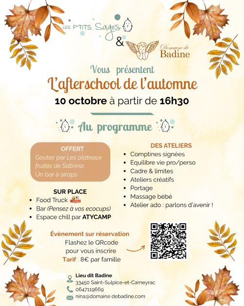Afterschool au Domaine de Badine avec Les P’tits Sages, pour que enfants et parents passent un moment convivial et ludique.
