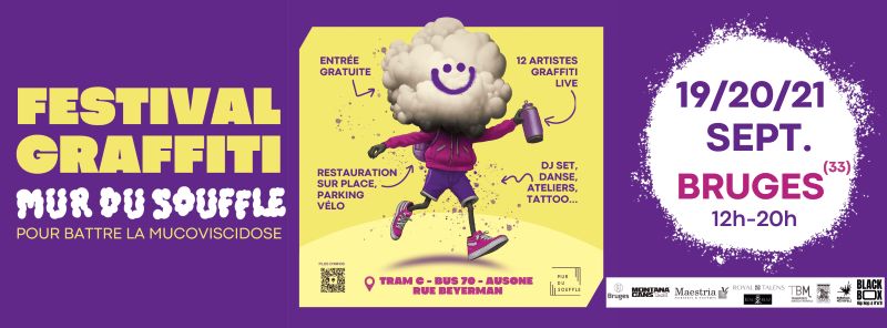Rendez-vous les 19, 20 et 21 septembre 2025 à Bruges, aux portes de Bordeaux, pour une immersion de trois jours dans le monde du street-art, au profit d’une cause essentielle, le combat contre la mucoviscidose.