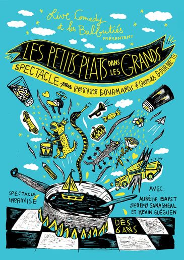 Les Petits Plats dans les Grands est un spectacle participatif théâtral IMPROVISÉ ! par la Cie Les balbutiés et Live comédie.