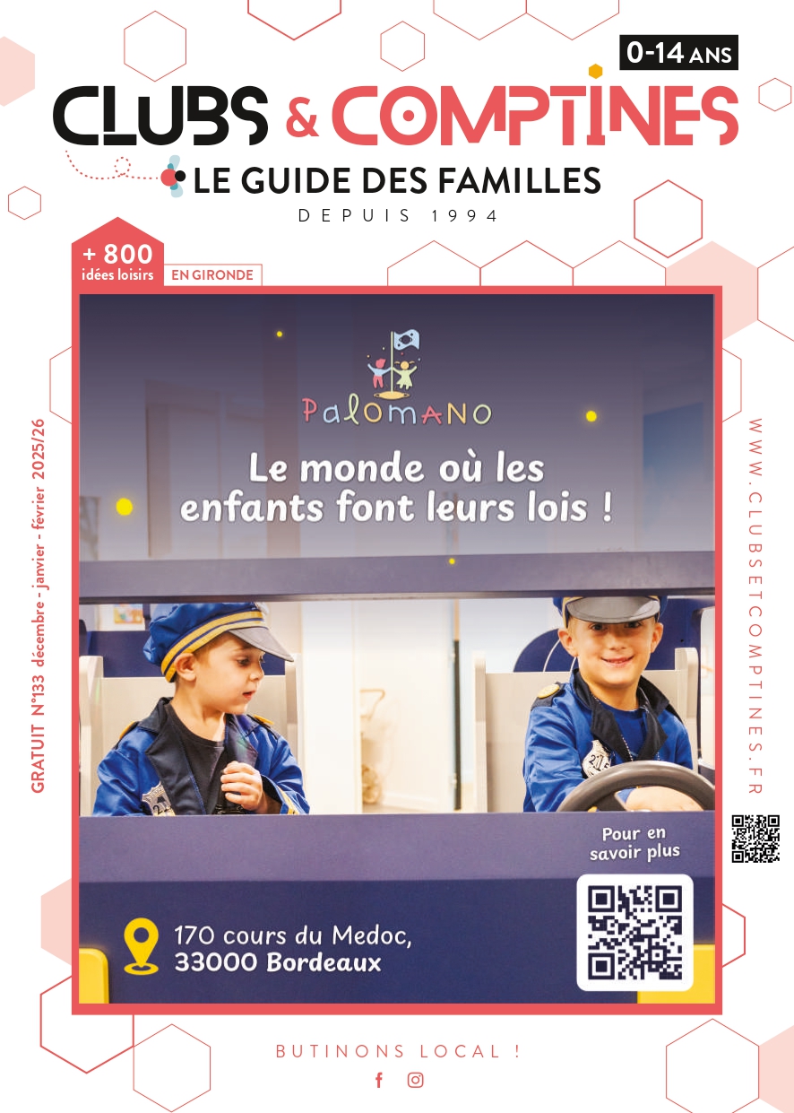 Chaque trimestre, notre revue est diffusée à 28 000 exemplaires et distribuée gratuitement au sein d’un réseau de 600 points de Bordeaux Métropole et au-delà . Au fil des pages, les lecteurs parcourent l’AGENDA des spectacles et des festivals, les idées de SORTIES CÔTÉ VILLE ET CÔTÉ CAMPAGNE, les ACTIVITÉS EXTRA-SCOLAIRES (créatives, sportives, intellectuelles…), les STAGES et les COLONIES DE VACANCES, les meilleurs lieux où fêter les ANNIVERSAIRES et une ribambelle d’autres informations à destination des familles avec enfants.